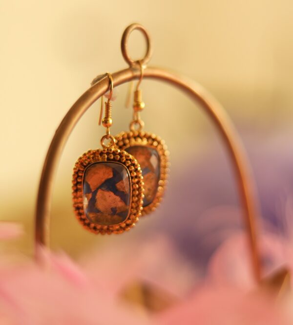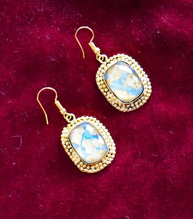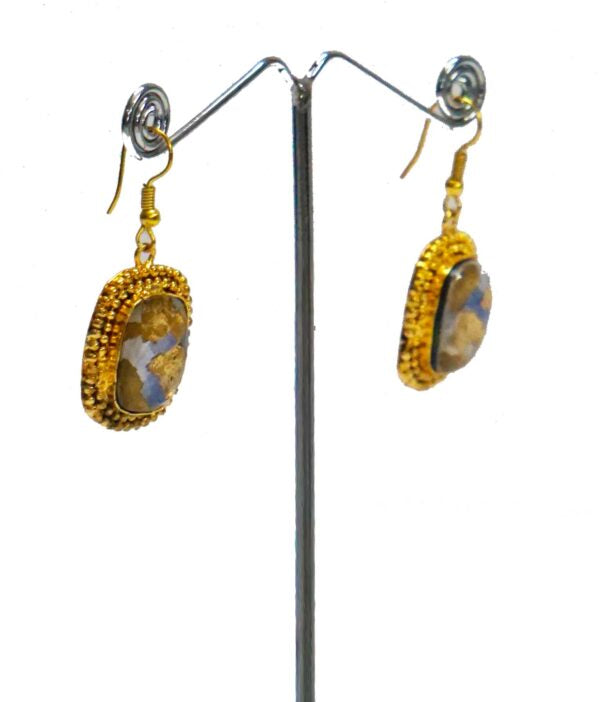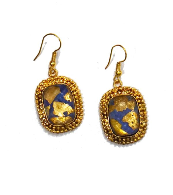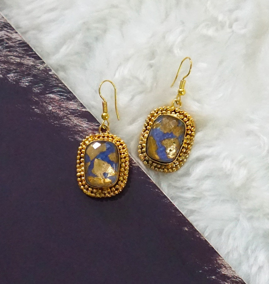 Lapiz Lazuli stone is set in brass and worked with rava work. The drop earring can be styled with any attire.