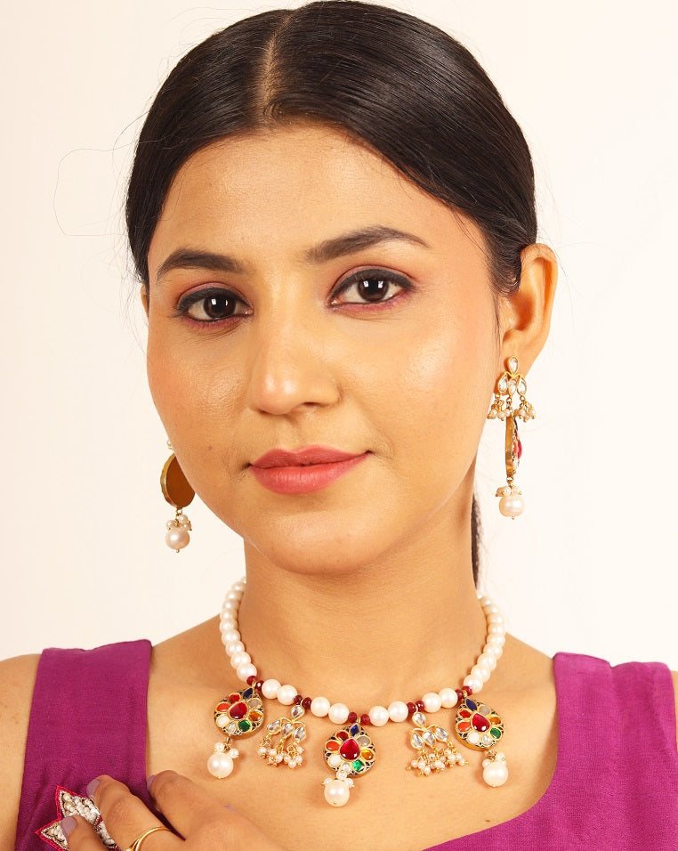 Just the color for that designer outfit, this Navratna set is from the trending new look.