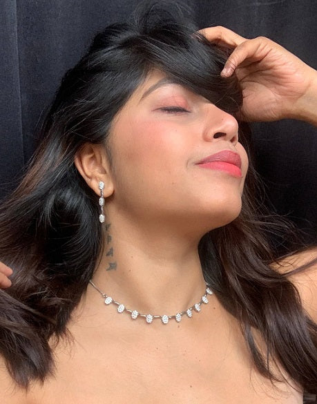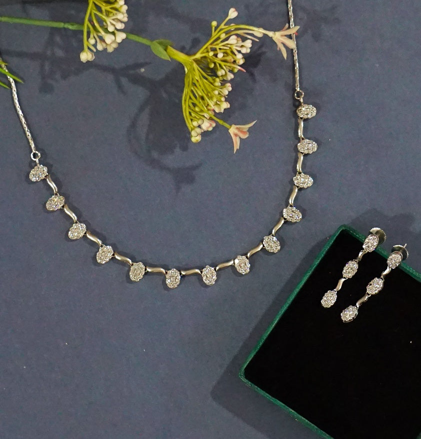 Crafted in silver, light weight necklace set for daily wear stand out.