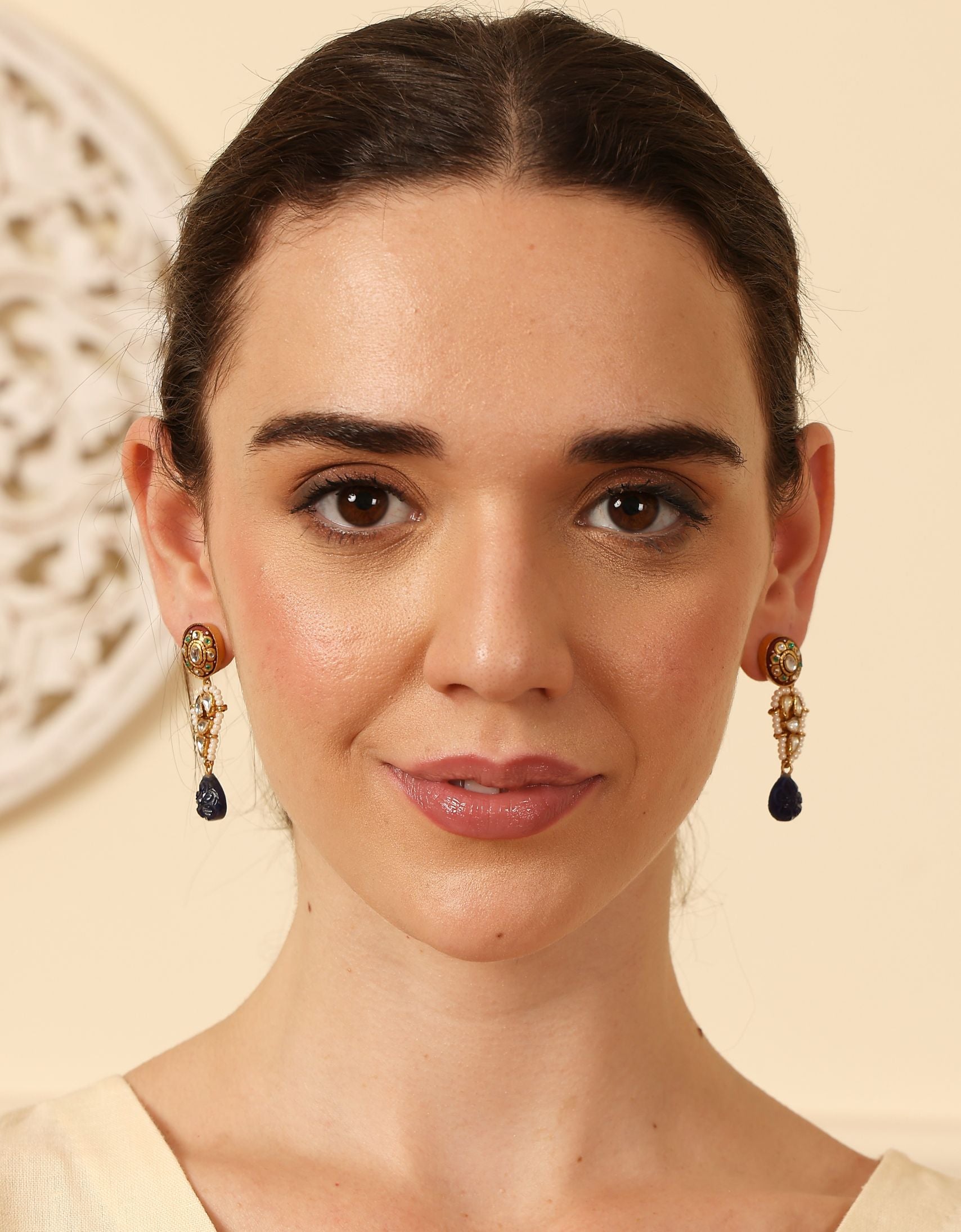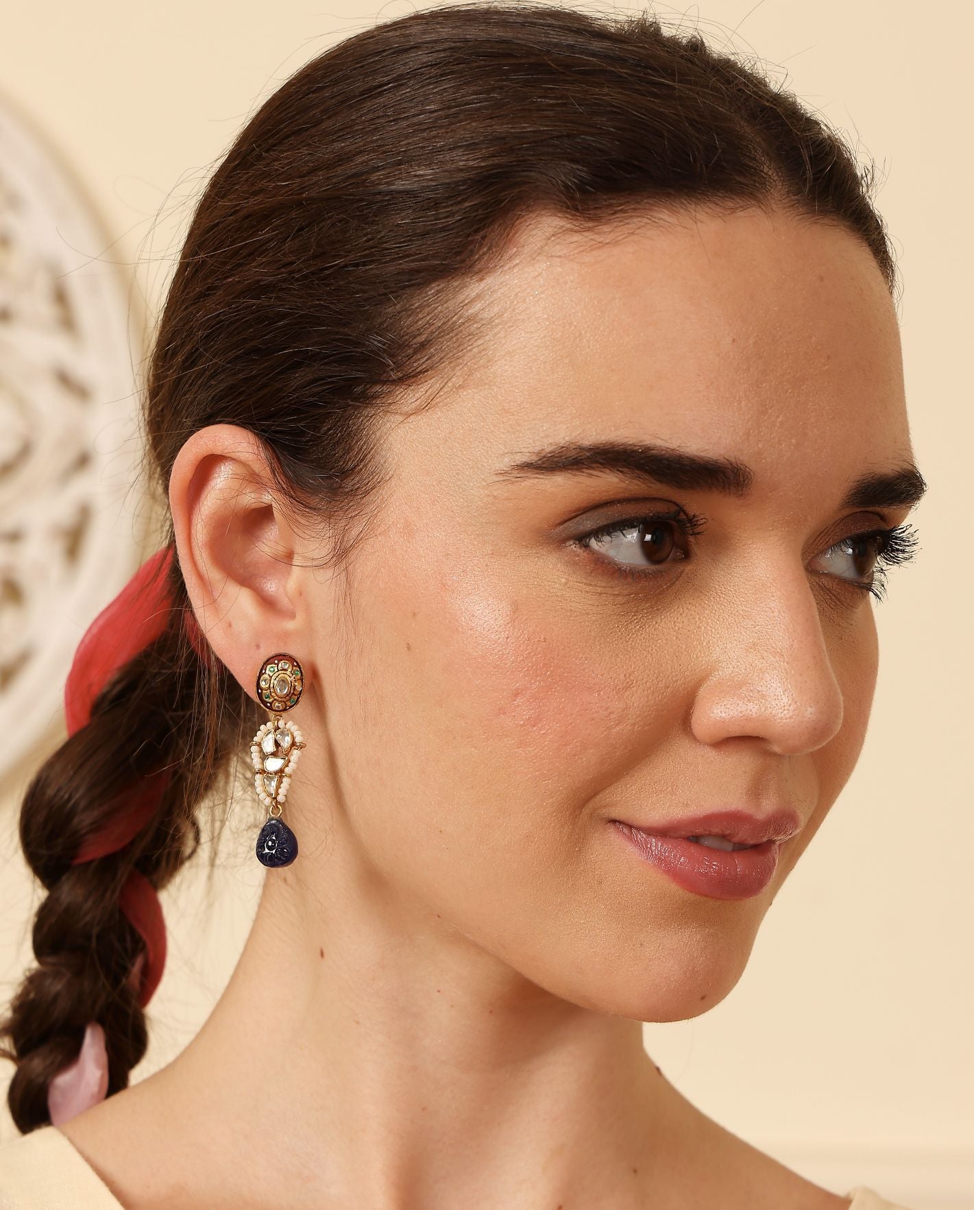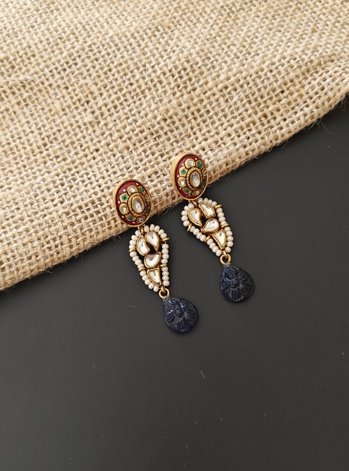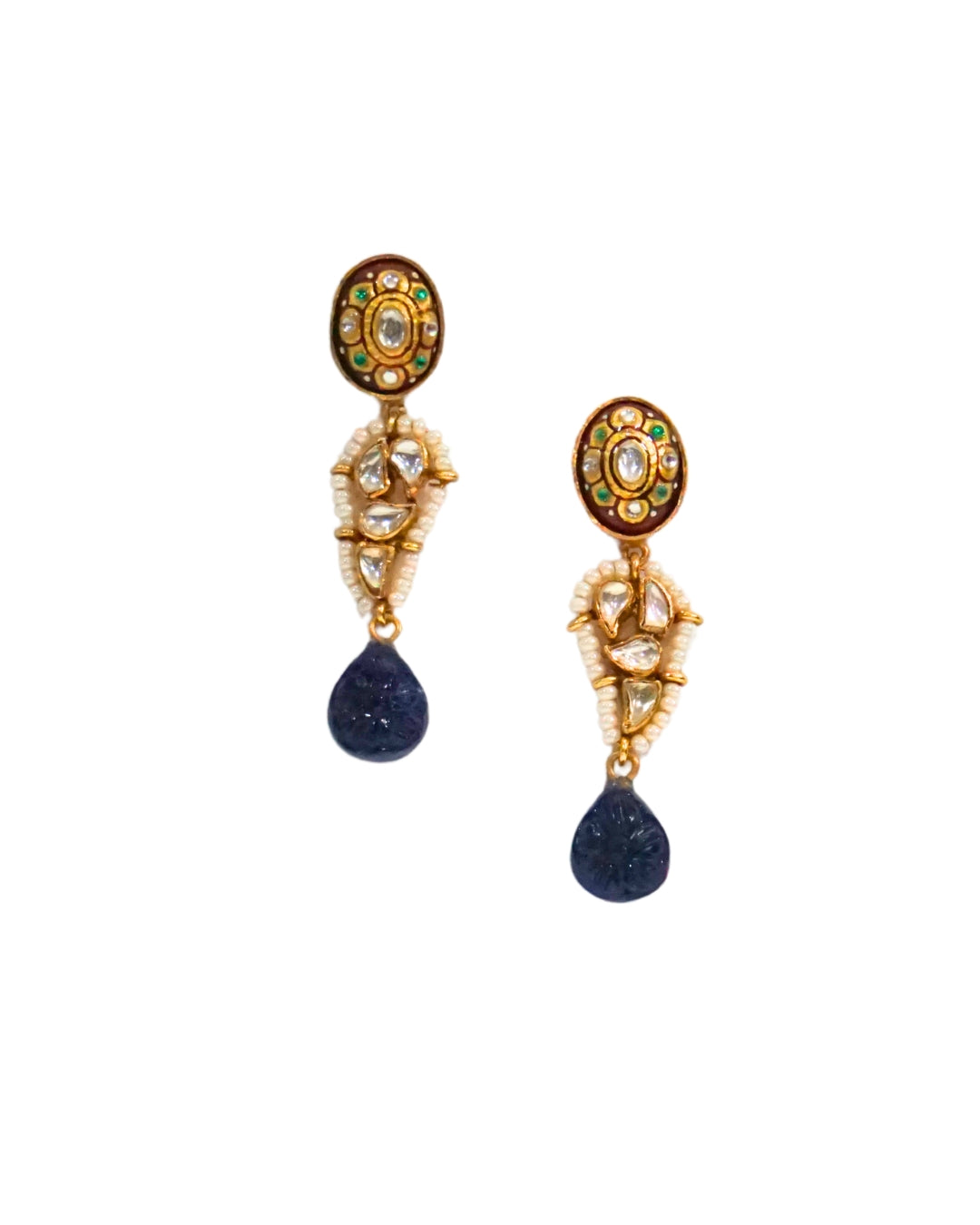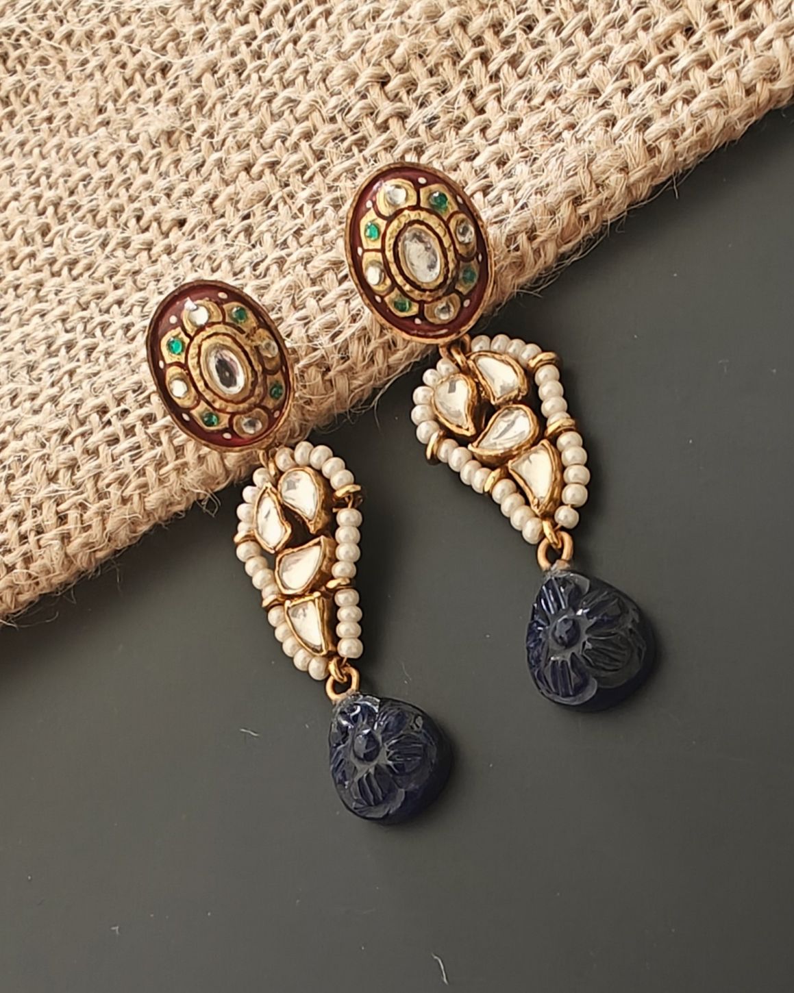 Encrusted with 24k Gold polish and handcrafted in 925 Sterling Silver the appeal of this piece blend of hand paint work and kundan setting.