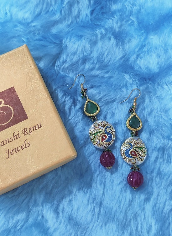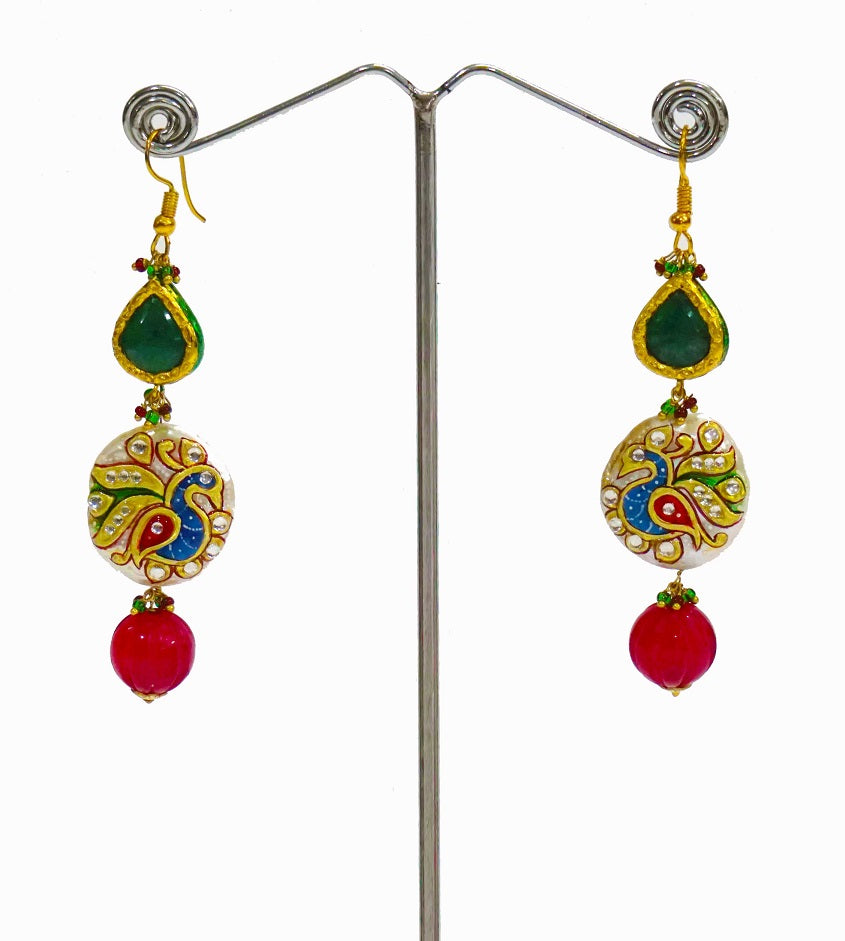 Pear shape drop combination with Red and Green has just right fusion and class. Beautifully embellished and styled for the latest trend.