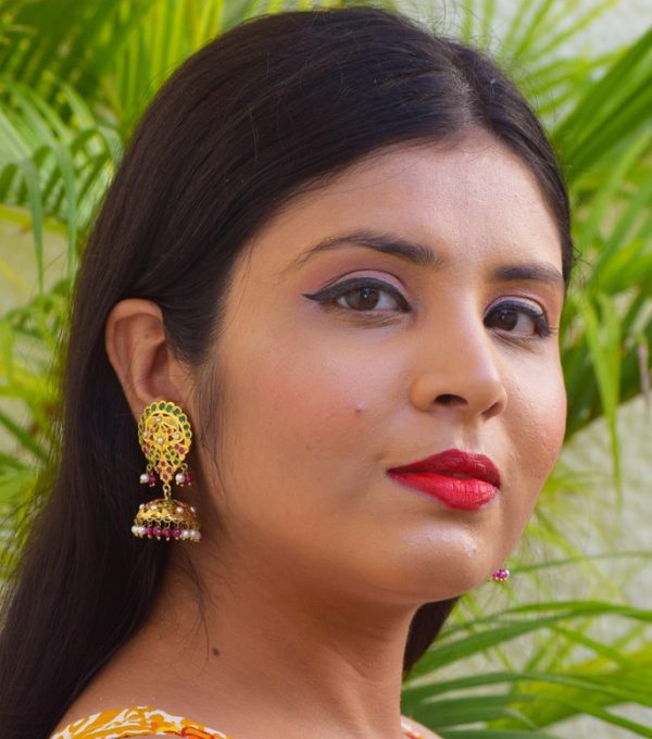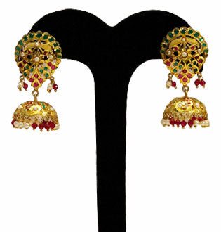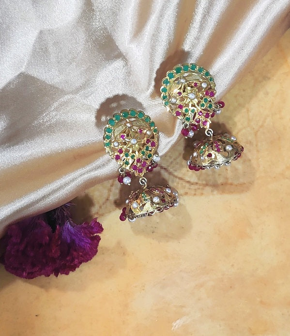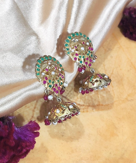 Encrusted with Zircon stones & Pearl the earring is handcrafted in Silver. The beautiful sawing work brings out the ethnic feel.