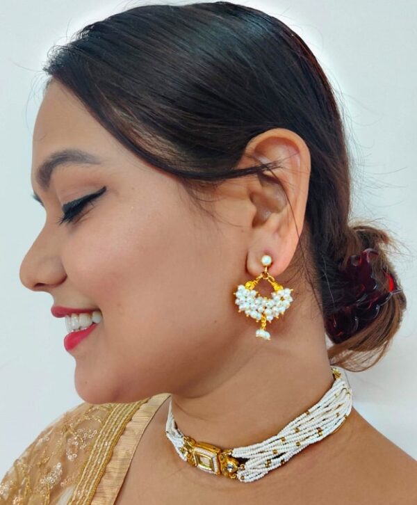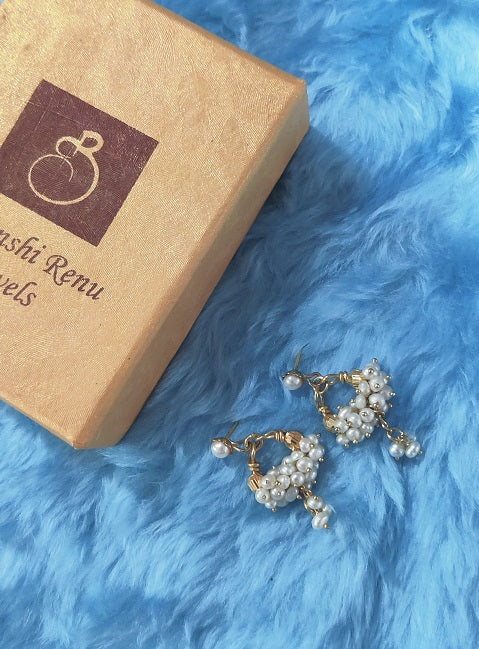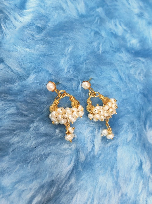 Pearl clusters set with silver in chandbali pattern are just the right choice for that ethnic look.