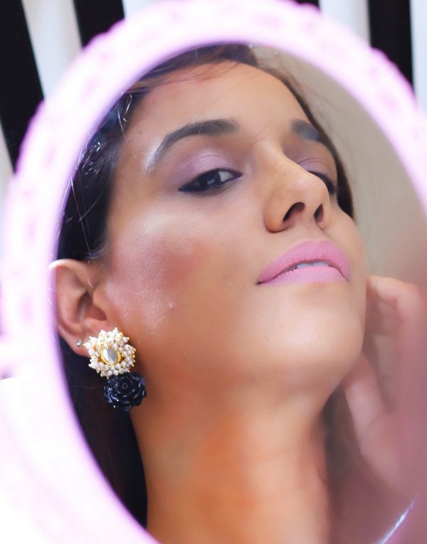 The imitation stone is set with pearls and dangled with black flower. Beautiful and classy it’s a must-have.