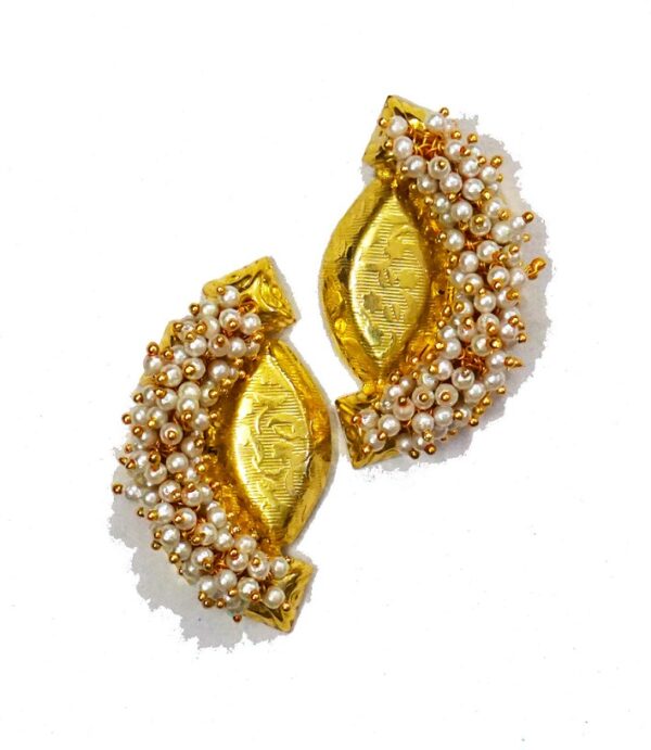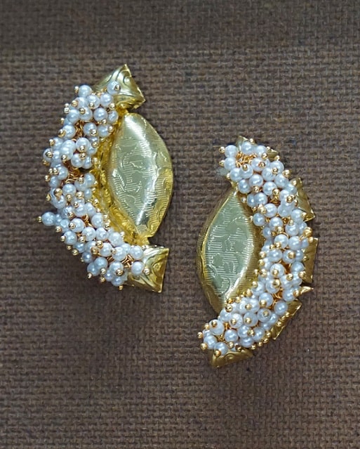 Crescent worked with pearls and gold polish. Stud is handcrafted and complete in its look.