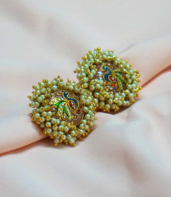 Traditionally hand painted this Rose Quartz beauty is a mix of hand painting and pearls. It makes a great blend with any outfit.