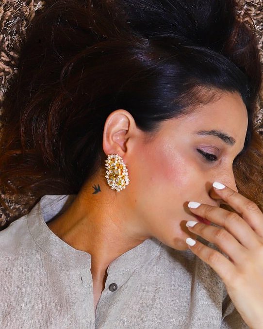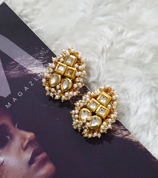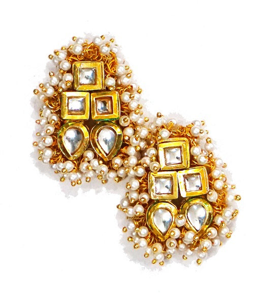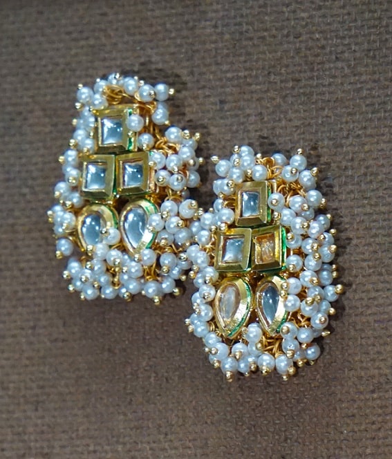 Handcrafted with embossing work, dangling red stone, and pearl work it is a complete earring.