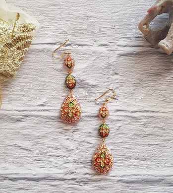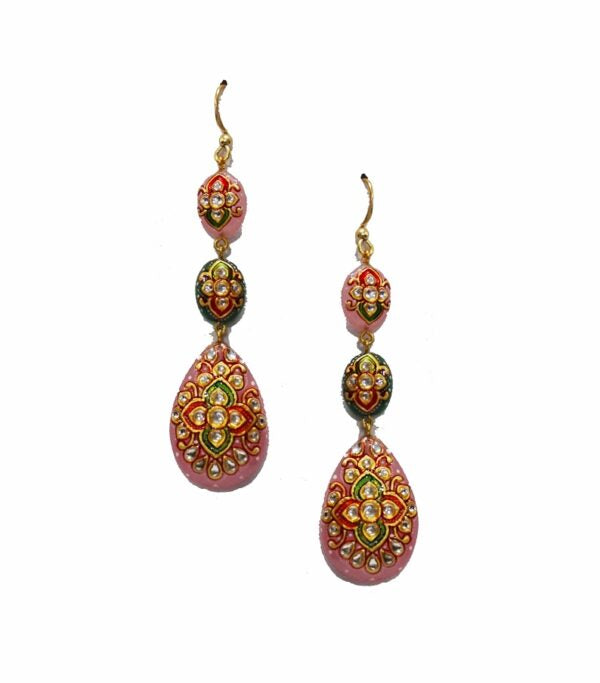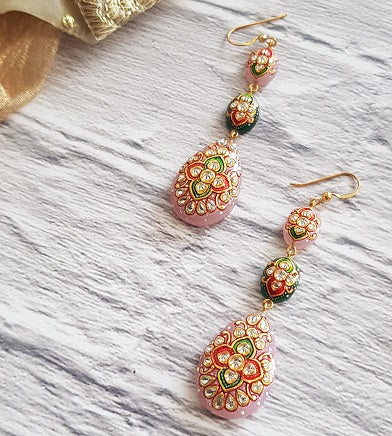 Encrusted with hand painted work Rose Quartz and Green Onyx is set in Silver. The exquisite blend of colors makes it a must-have.