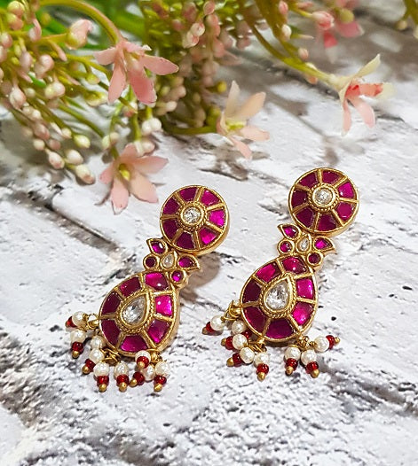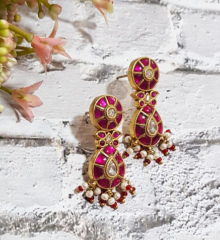 Embellished with elegance and grace this Pink Pachi Pear Earring is exclusively handcrafted with 24k Gold Polish.