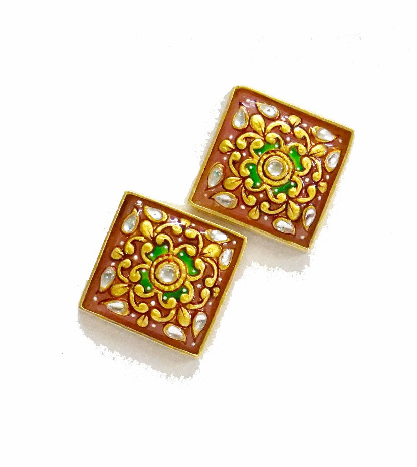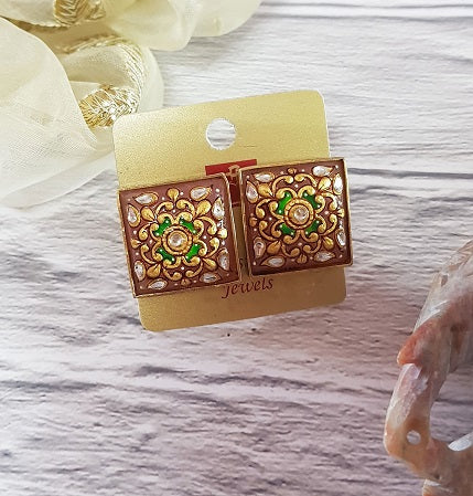 Pink Quartz Square Stud