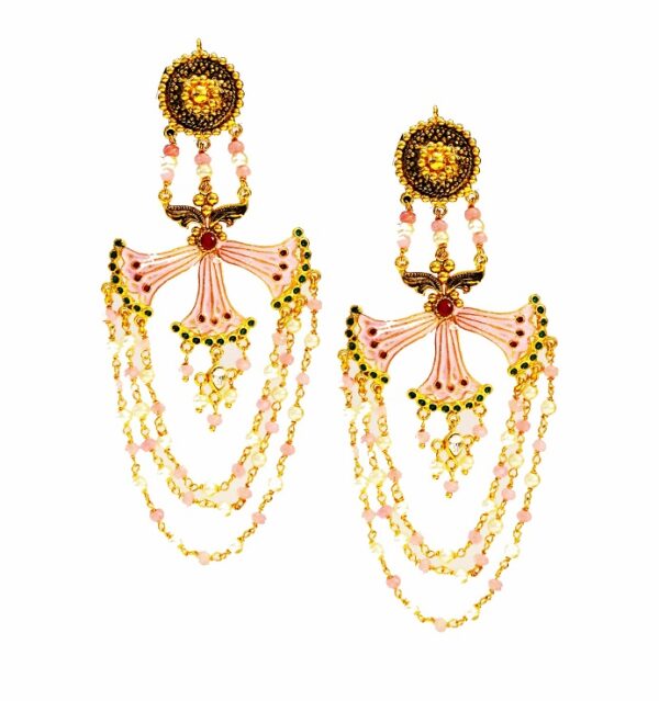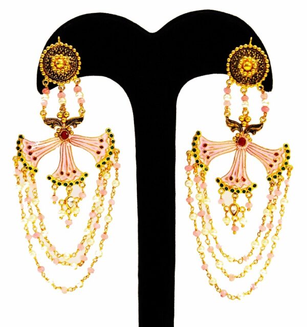 Unique in design and style the tassel earring are handcrafted in Silver. Embellished with Imitation Stones & Pearls, this Pink City collection piece has a mark of precision in it.