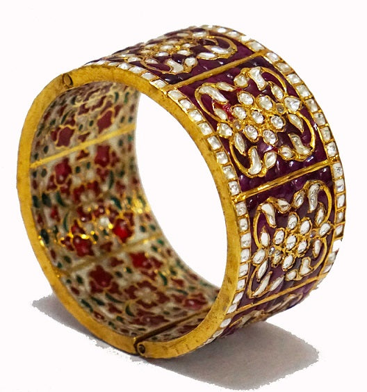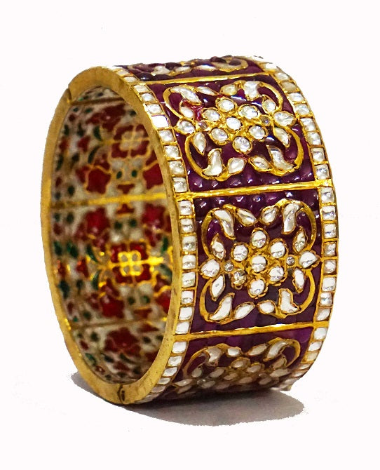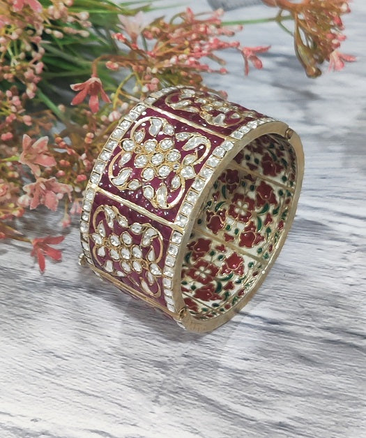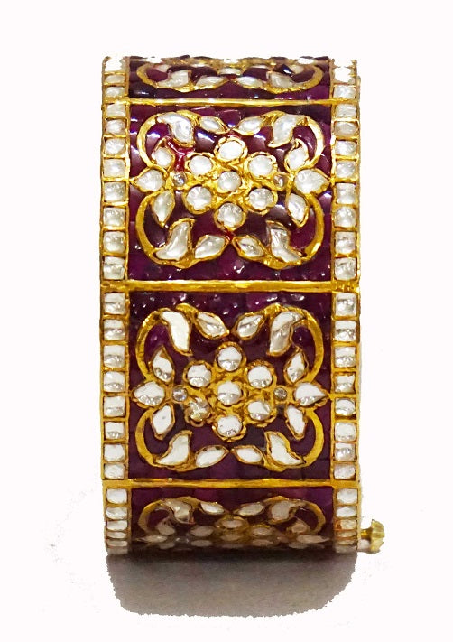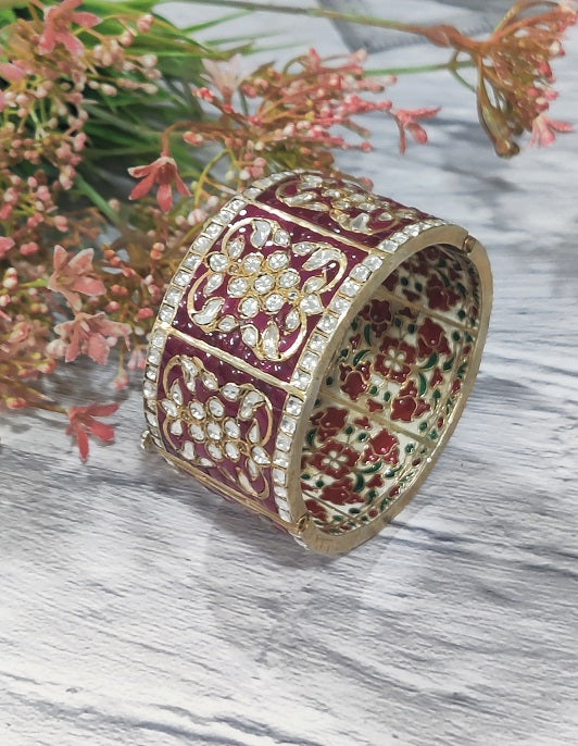 Embellished with Red stone and white polki this beautiful bangle is handcrafted in silver. Just the right fit for a bridal set.