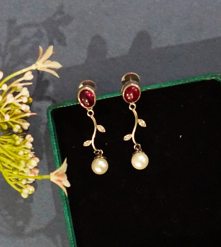 Encrusted with imitation stone this earring is handcrafted in silver. The simple classic daily wear earring.