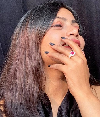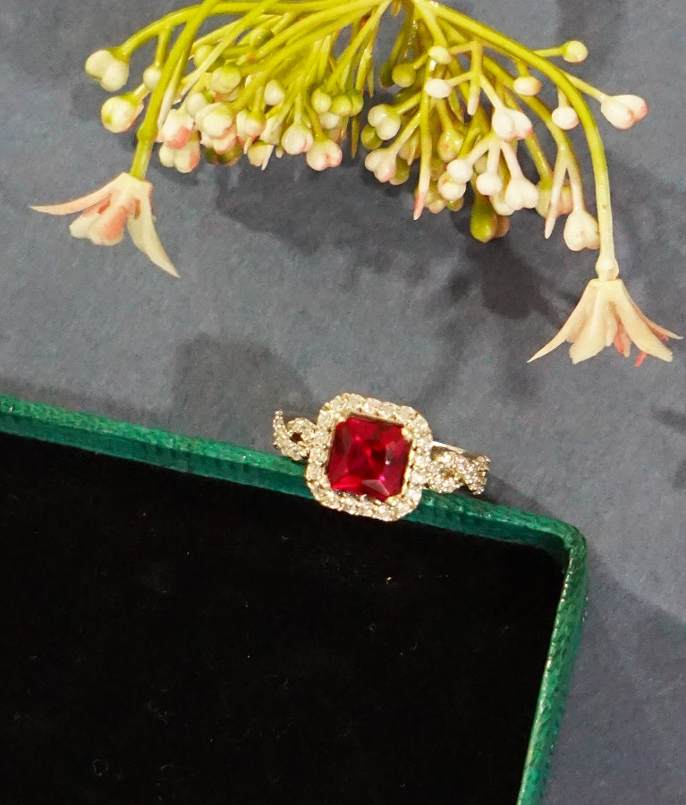 Encrusted with imitation stone this Ring is handcrafted in silver. The simple classic cocktail ring.