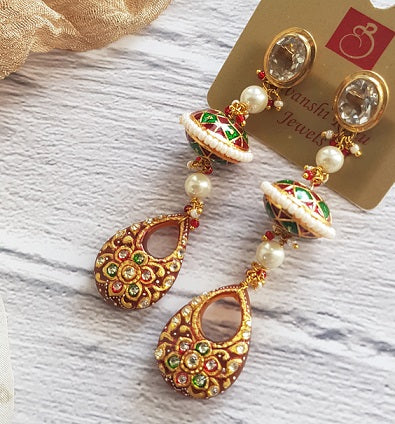 Embellished with hand painted work the stone is set in Silver. The exquisite blend of colors makes it a must-have.