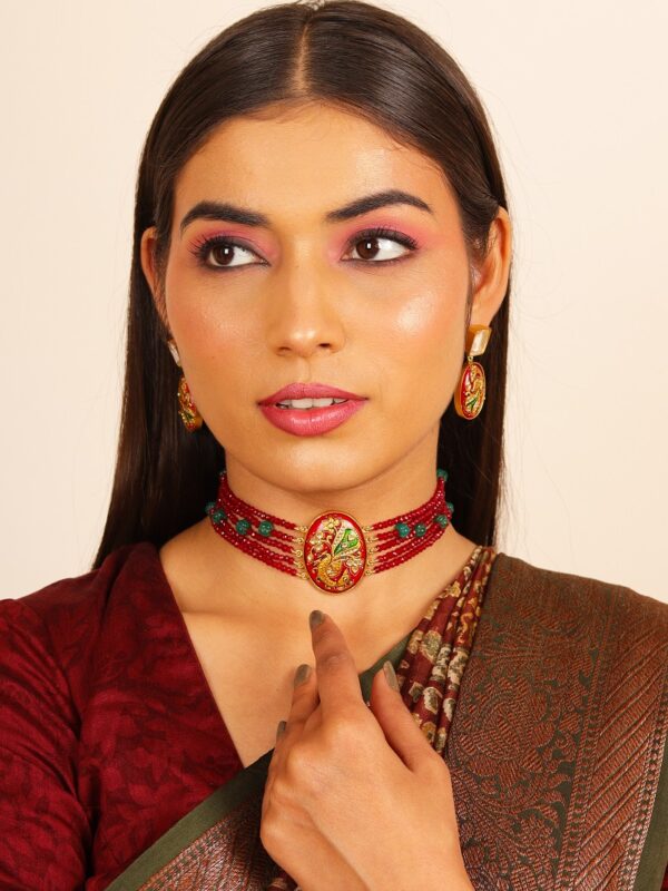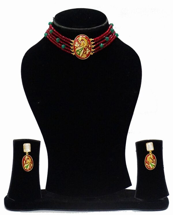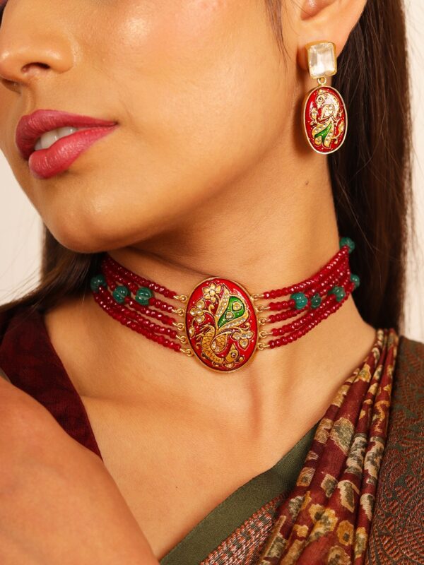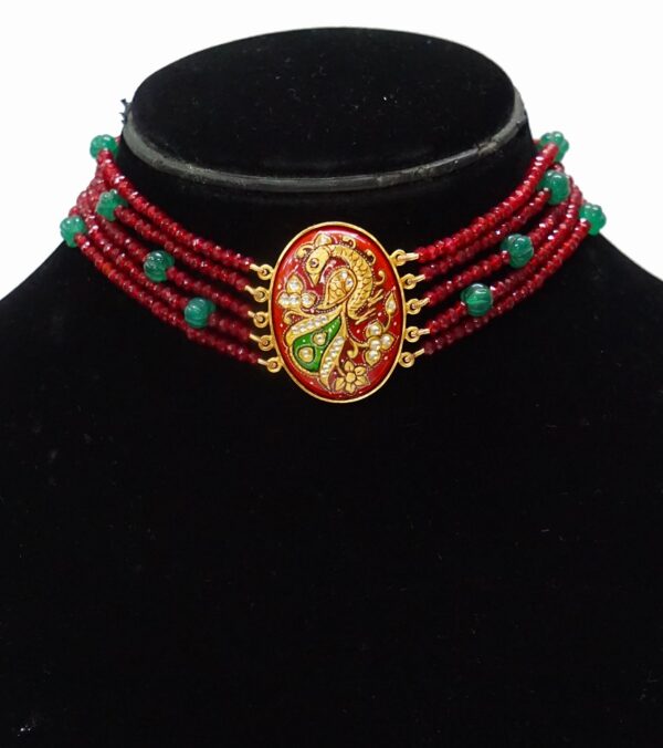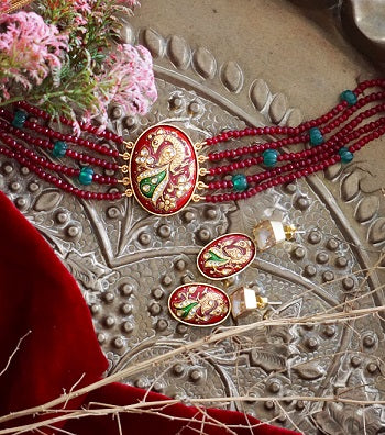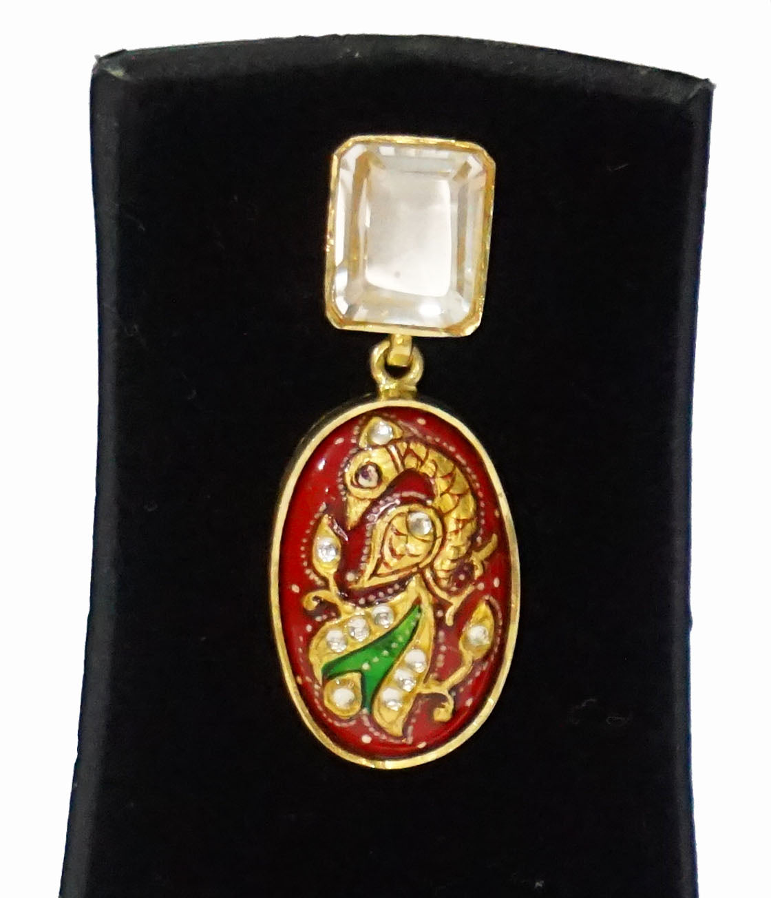 Encrusted with hand painted work Red Onyx is set in Silver. The exquisite blend of colors makes it a must-have.