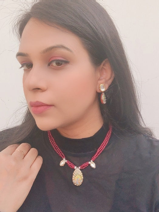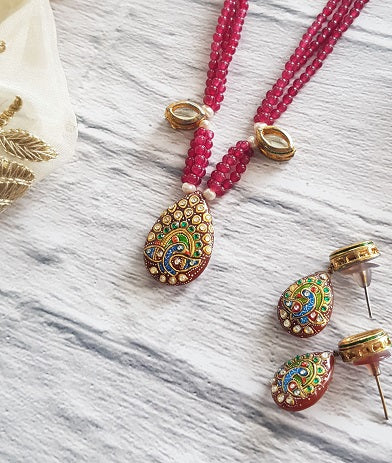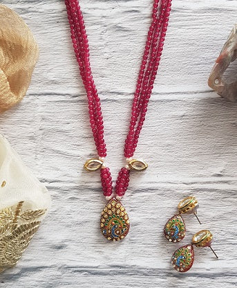Red Peacock Paint Necklace Set