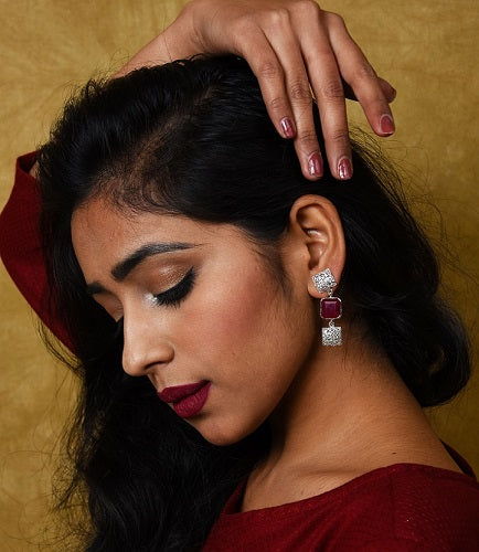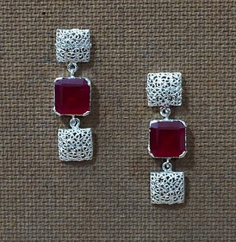 Layered between square motifs, Red Onyx stone and the silver finish has a classy and bold look to it.