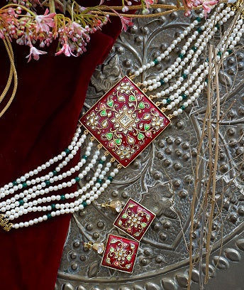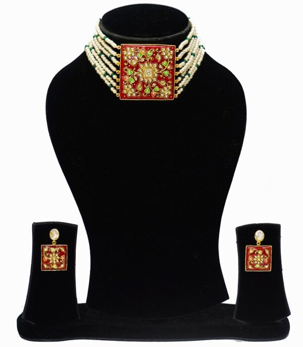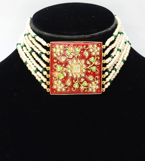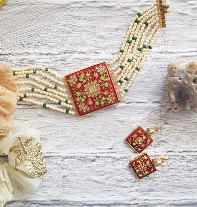 Encrusted with hand painted work Red Onyx is set in Silver. The exquisite blend of colors makes it a must-have.