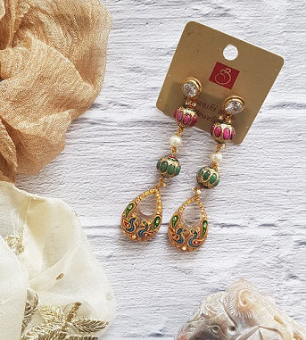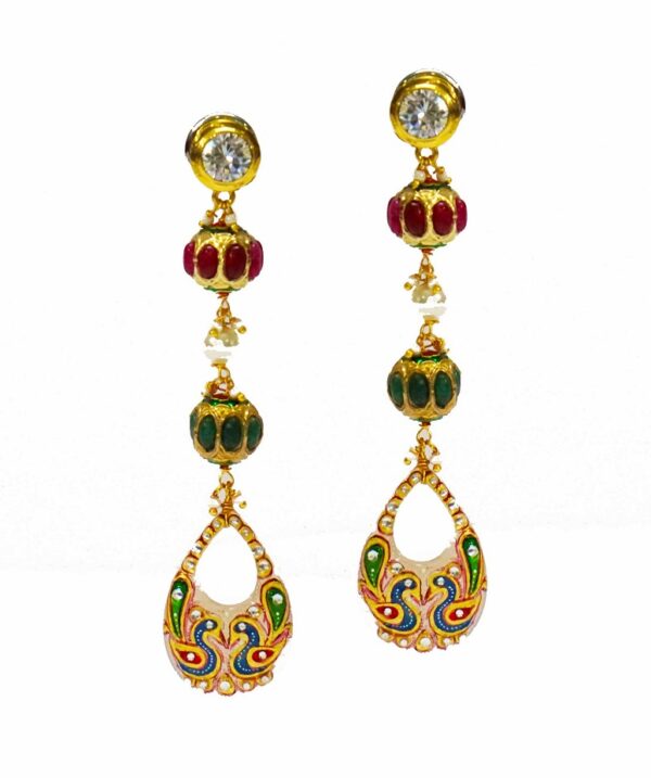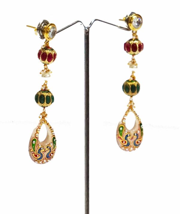 Encrusted with hand painted work Rose Quartz is set in Silver. The exquisite blend of colors makes it a must-have.
