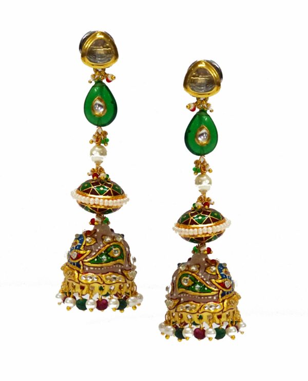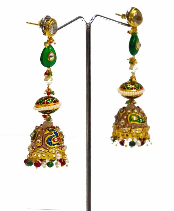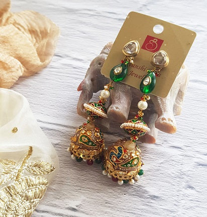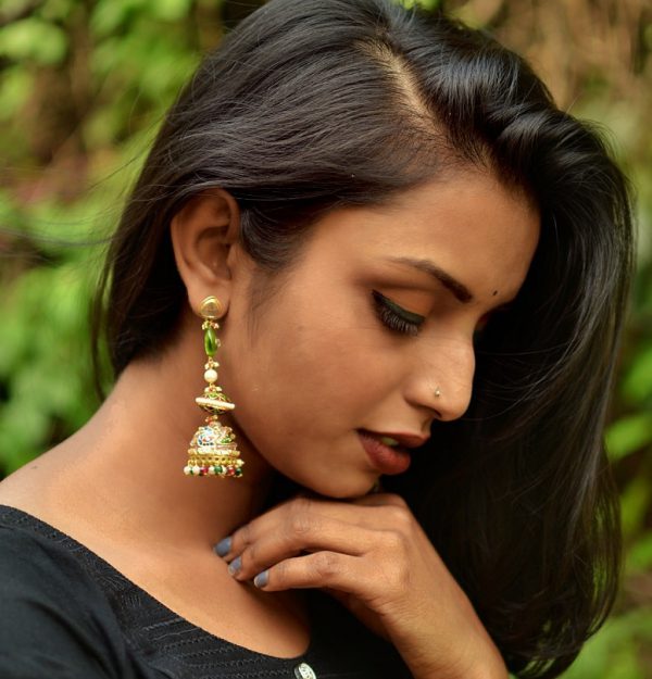 Embellished with hand painted work the Rose Quartz is set in Silver. Dangling with the imitation stone it is a blend of traditional and modern thought.