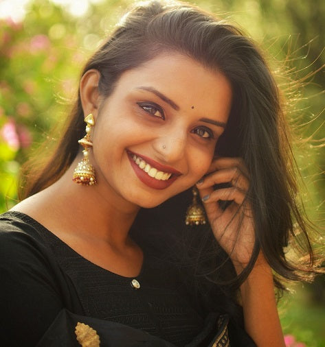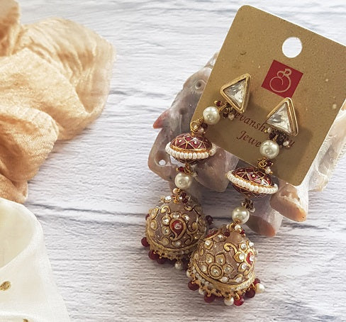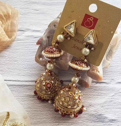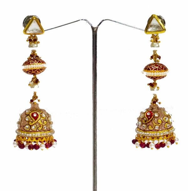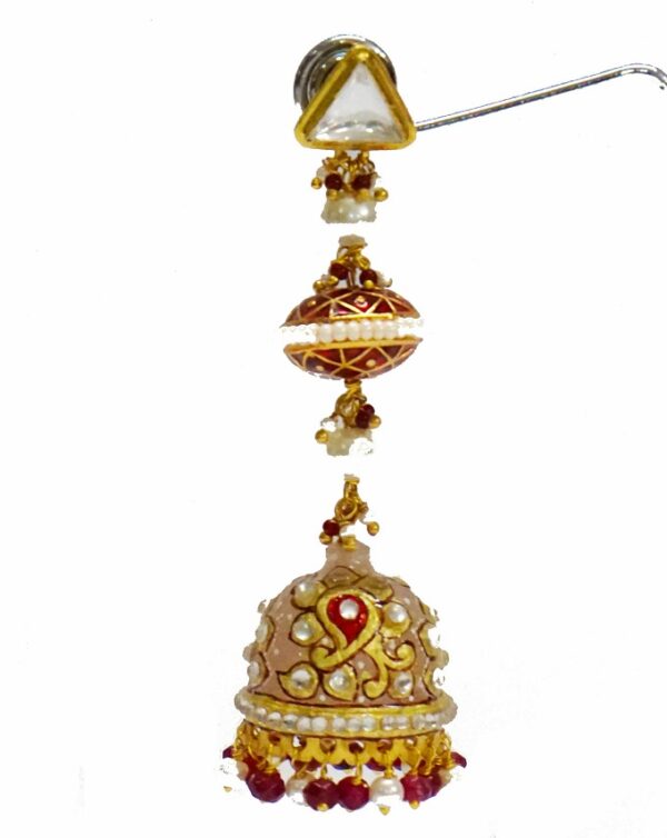 Embellished with hand painted work the Rose Quartz is set in Silver. Dangling with the imitation stone it is a blend of traditional and modern thought.