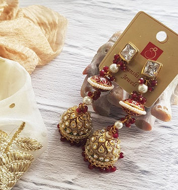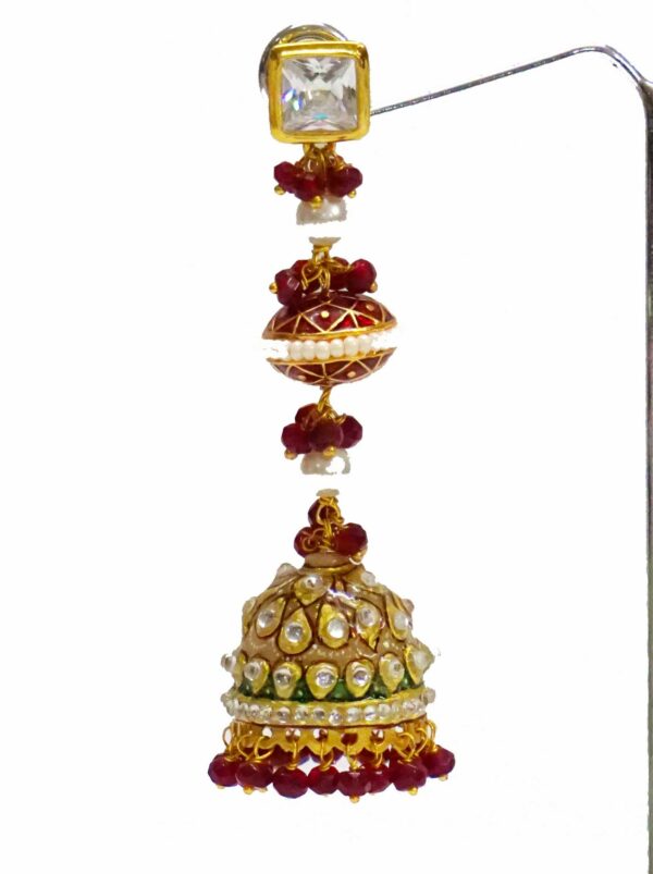 Embellished with hand painted work the Rose Quartz is set in Silver. Dangling with the imitation stone it is a blend of traditional and modern thought.