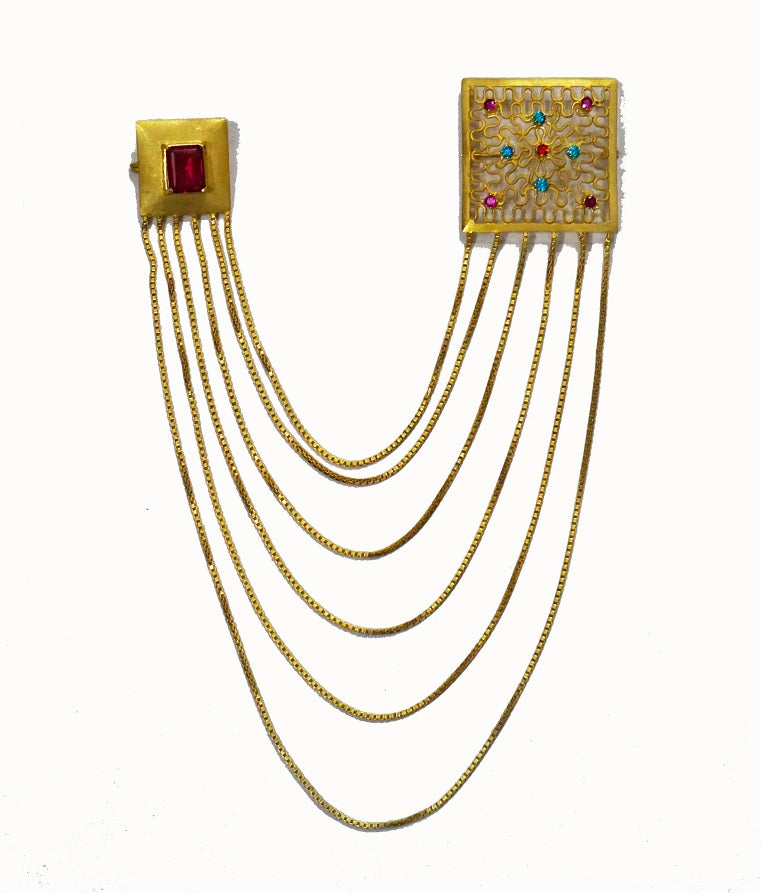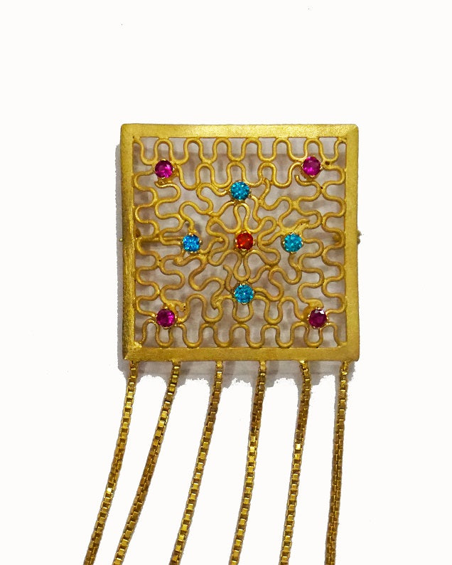 Handcrafted in silver this brooch is embellished with stones and our signature filiree work. It’s just the perfect bold piece.