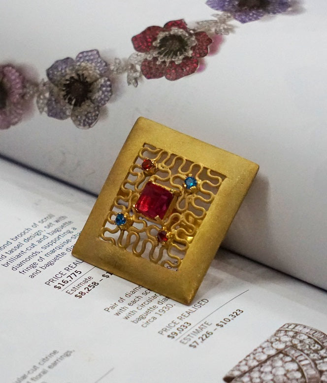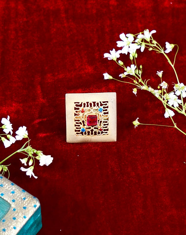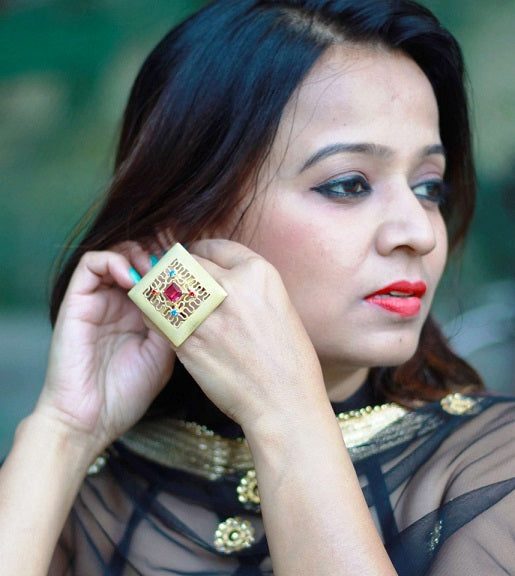 This ring is handcrafted in silver, with our signature work of wire filigree set with stones for a classy bold look.