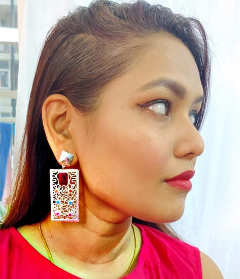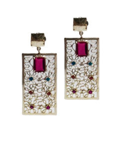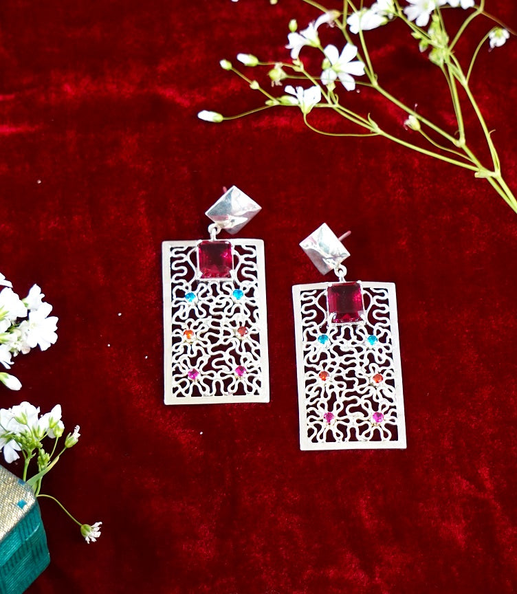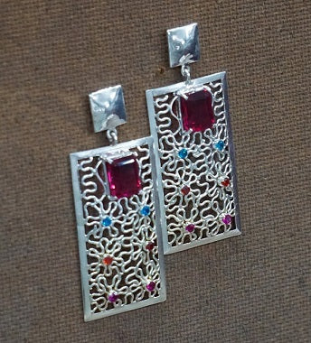 Handmade in Silver with one side of Sand Blasting & one with Wire Filigree set with stones this Signature Designer set is all you need to shine in a party.