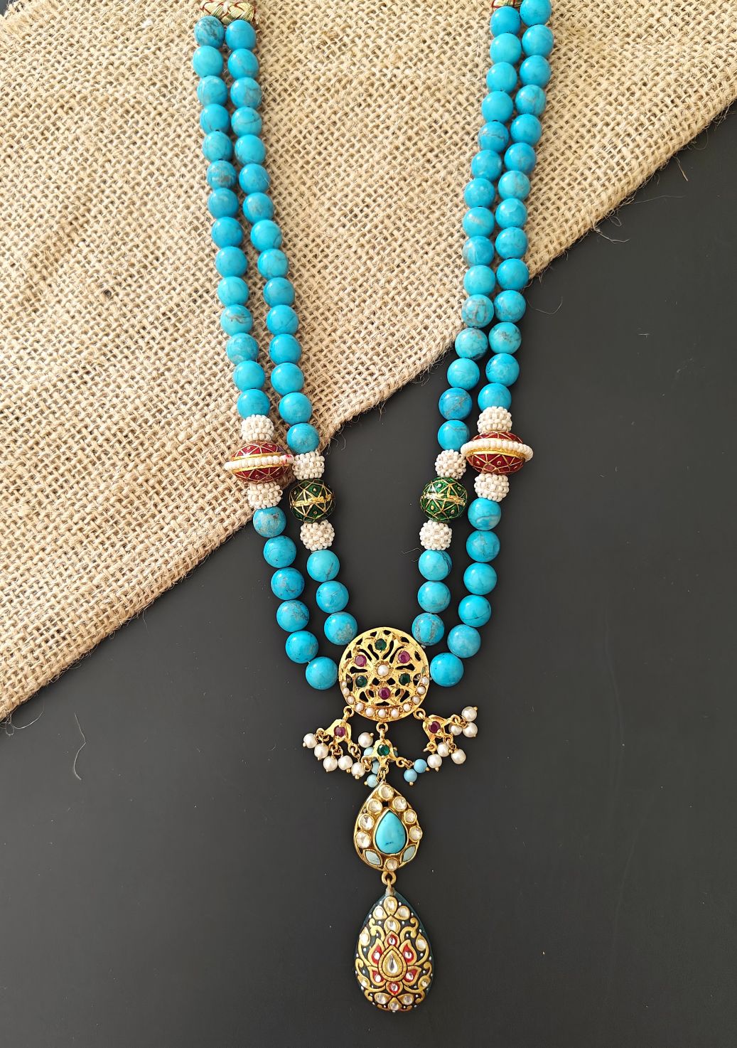 Turquoise Kundan Aari Royal Necklace