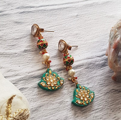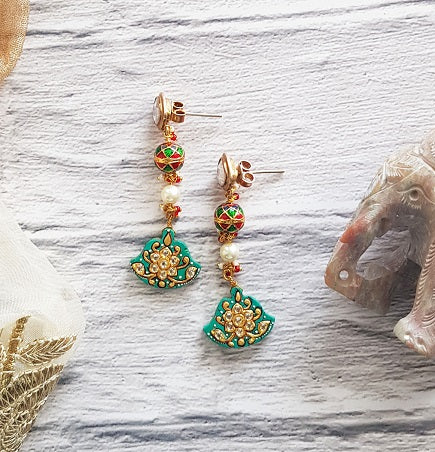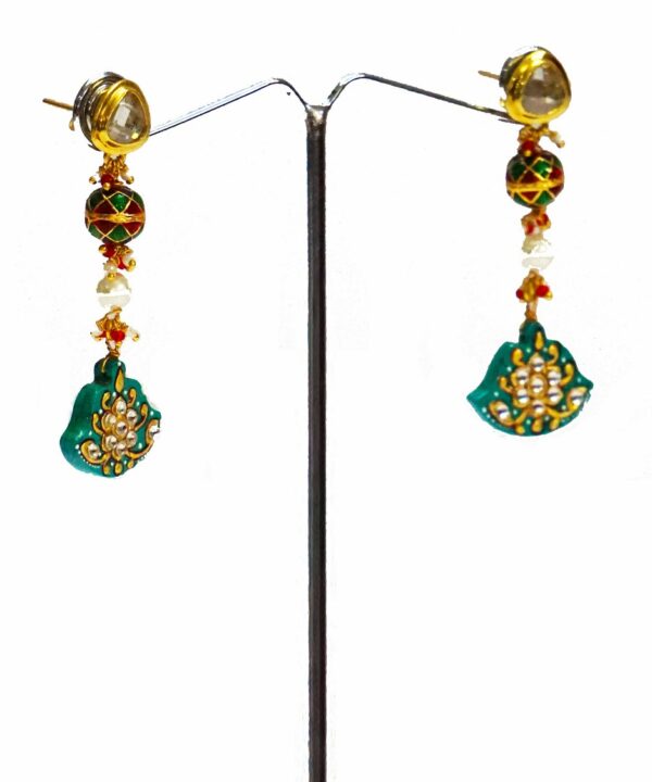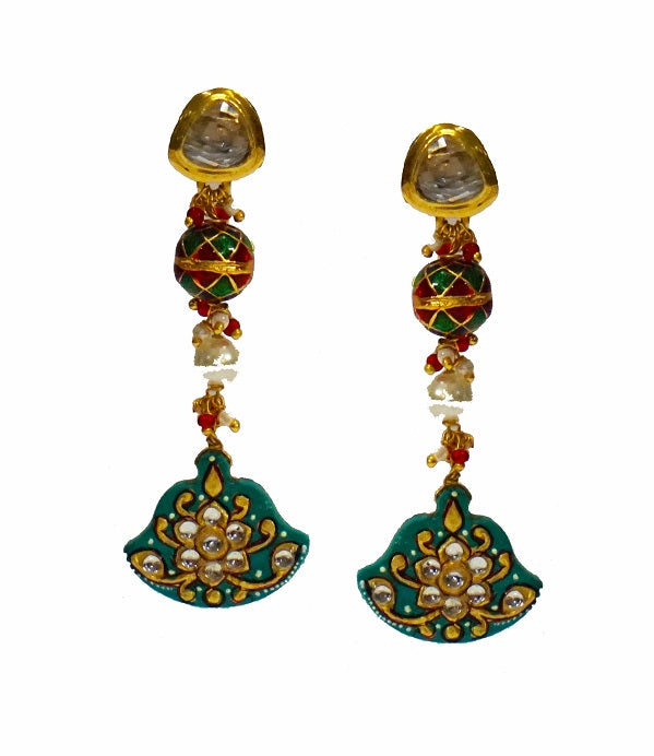 Embellished with hand painted work Turquoise is set in Silver. The exquisite blend of colors makes it a must-have.