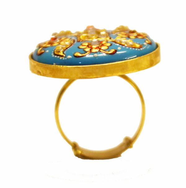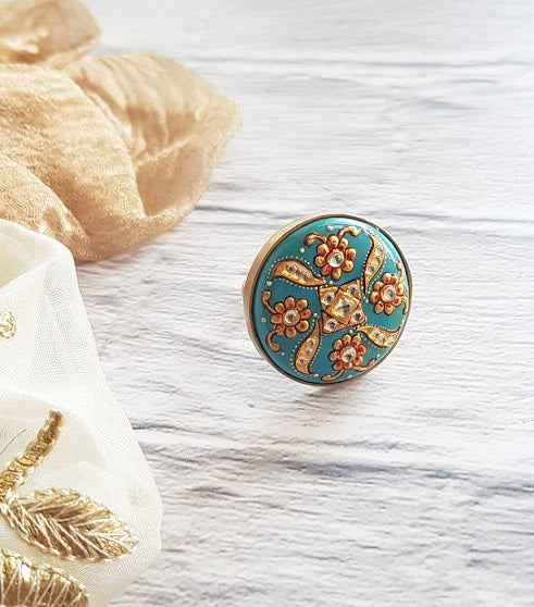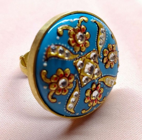 Encrusted with hand painted work the Coral is set in Silver. The exquisite blend of colors makes it a must-have.