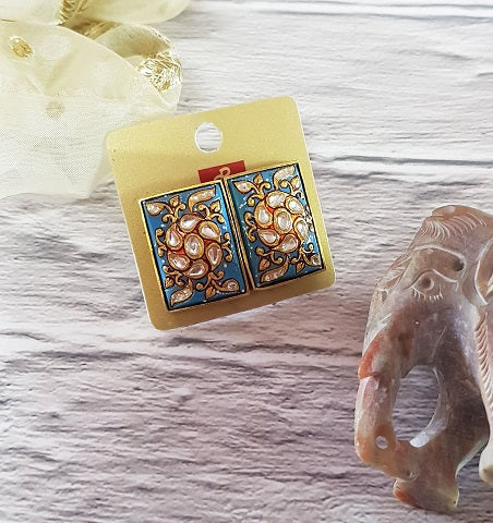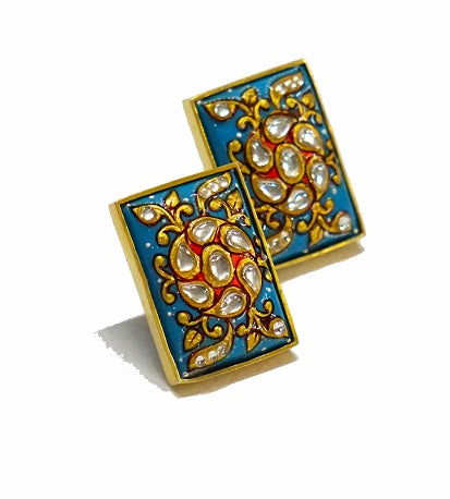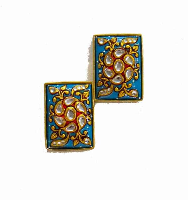 Encrusted with hand painted work the Turquoise is set in Silver. The exquisite blend of colors makes it a must have.