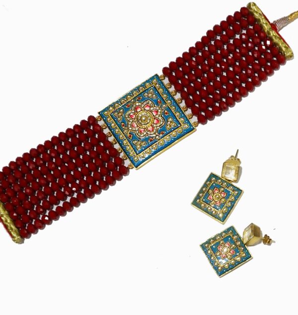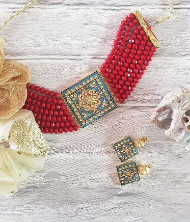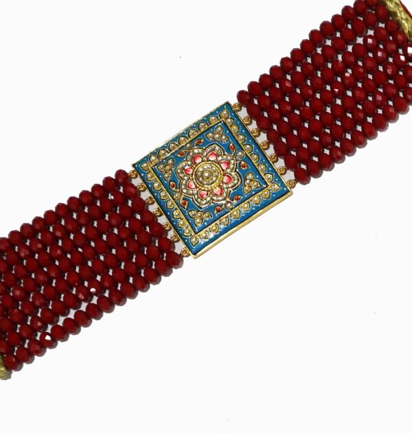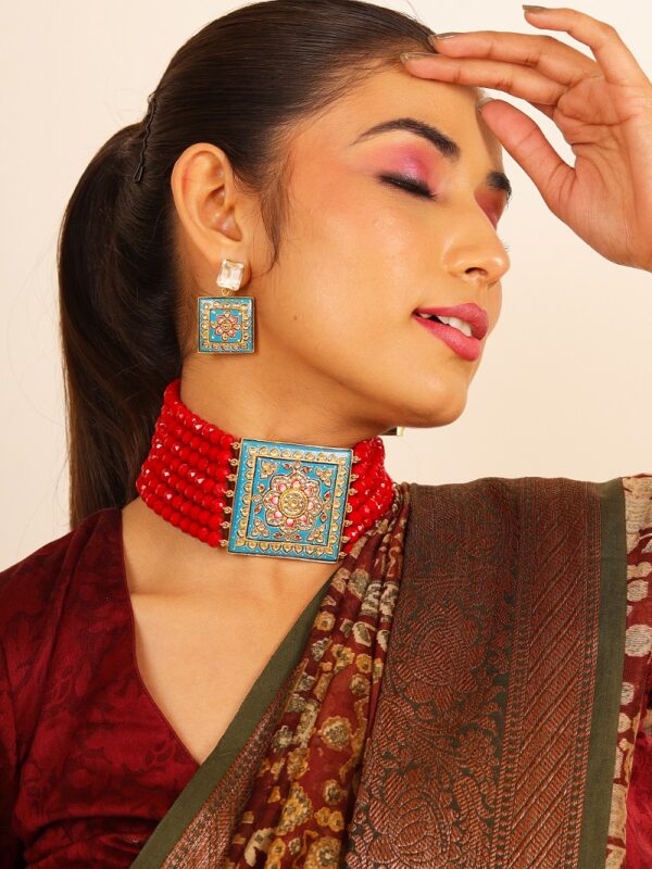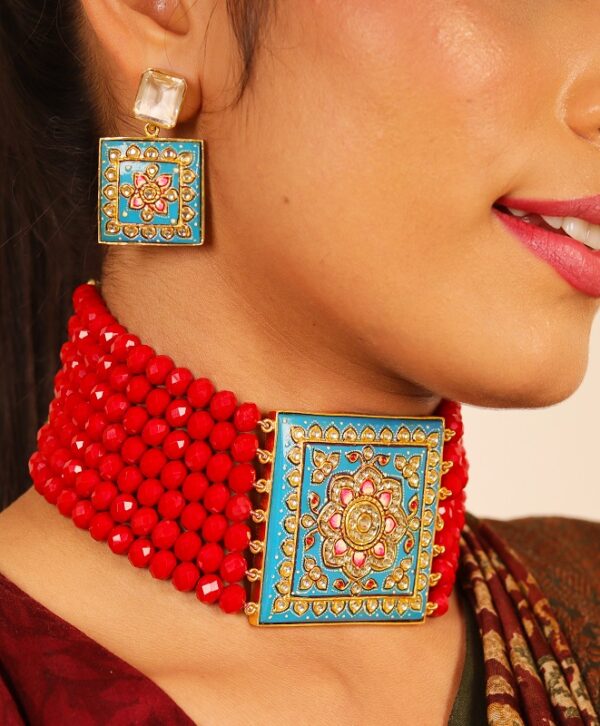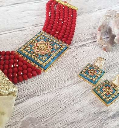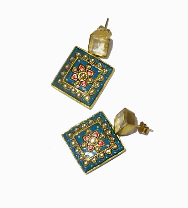 Encrusted with hand painted work Turquoise is set in Silver. The exquisite blend of colors makes it a must-have.