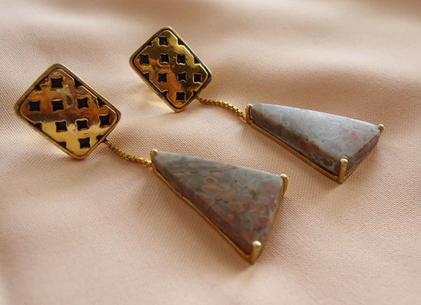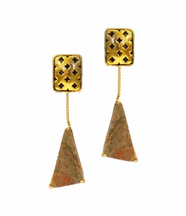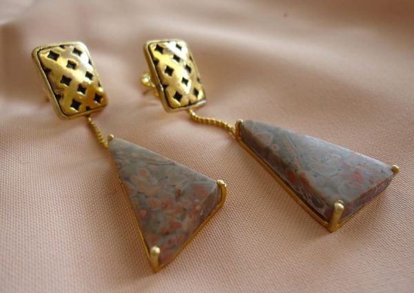 Jeweled with Unakite stone the earring is handcrafted in sterling silver. The simple sawing makes it a regular wear.
