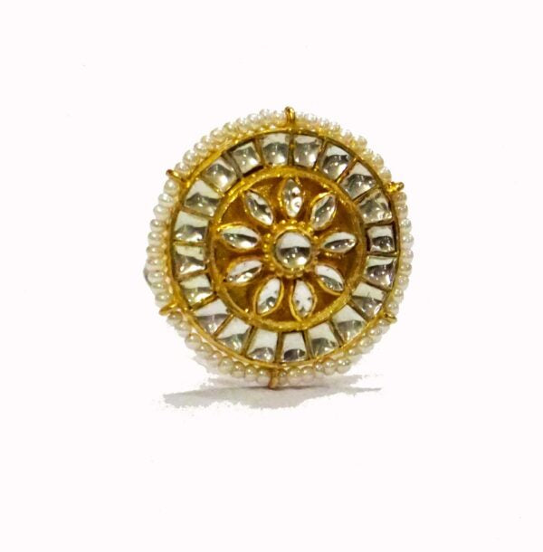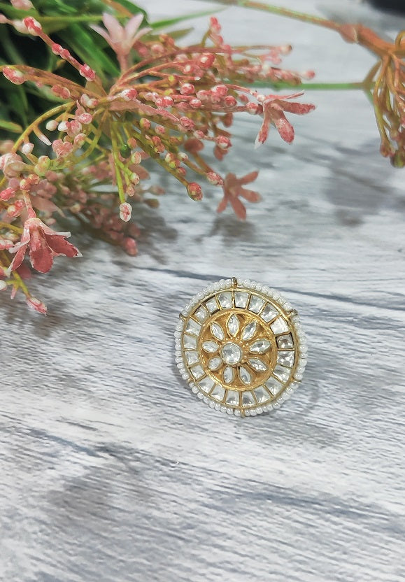 The brilliance of this Ring is the beautiful white polki complimenting the round shape. A wedding trousseau cannot be complete without such a beauty.