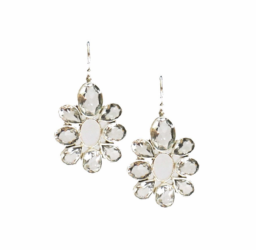 White, always works. Pair these simple imitation stone earrings with a chic look.