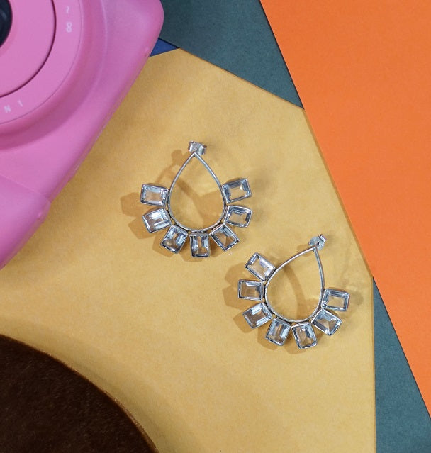 White, always works. Pair these simple imitation stone earrings with a chic look.