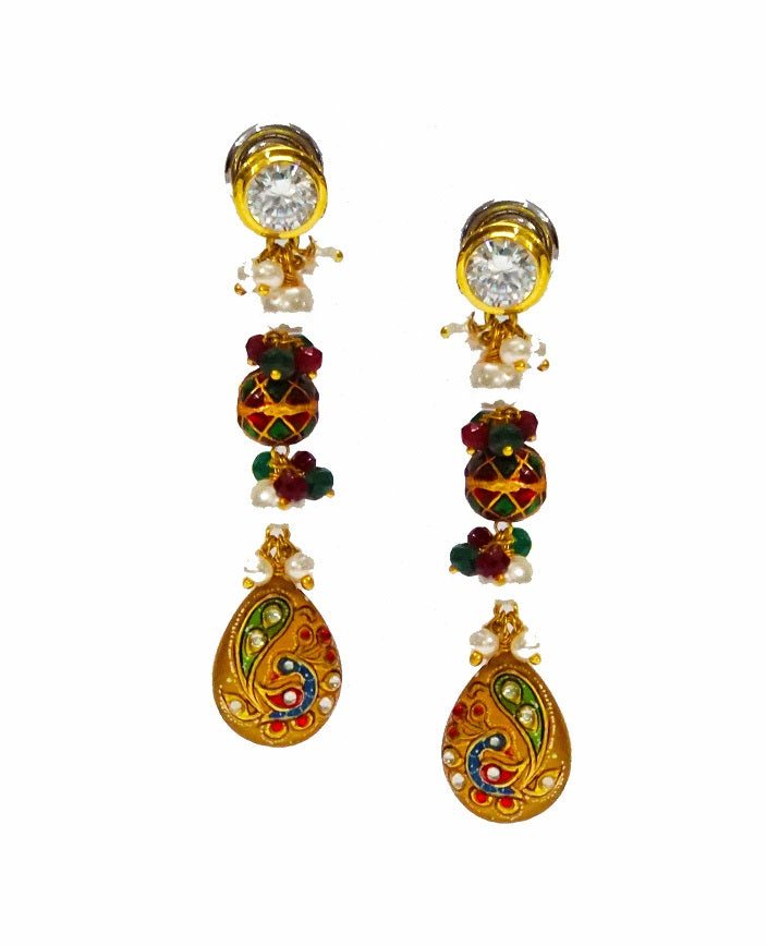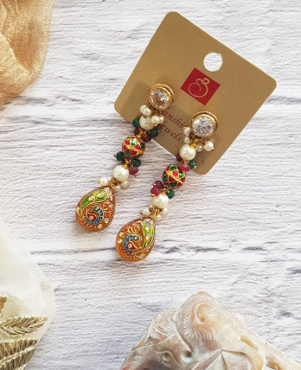Encrusted with hand painted work the stone is set in Silver. The exquisite blend of colors makes it a must-have.